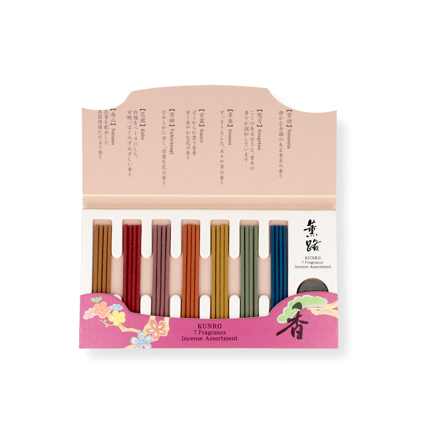- 「薫路(くんろ)」シリーズより、7種類の香りを4本ずつ、華やかなパッケージに詰めました。