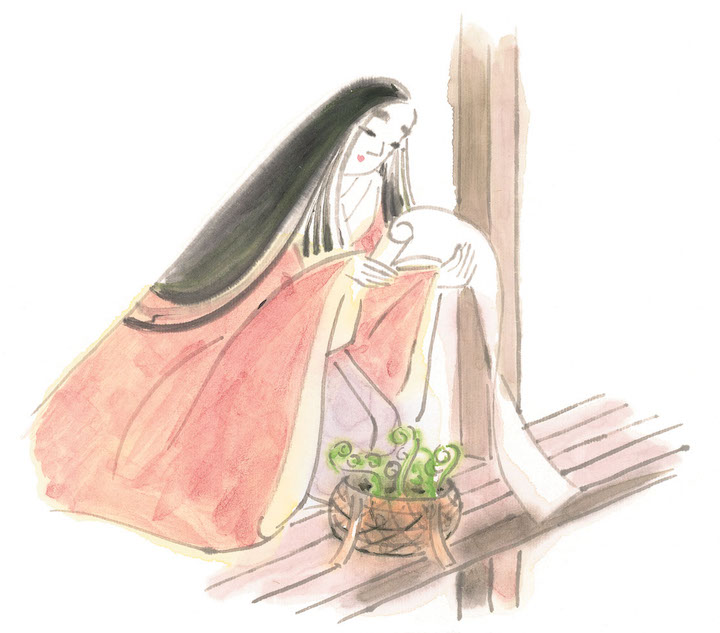 パッケージには、山寺の阿闍梨から届く早蕨と、手紙に心励まされる中君を描きました。
