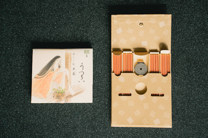そんな『源氏物語』の各帖を主題とし、それぞれの登場人物や情景、物語のイメージを、 さまざまな香りやお香の形状、デザインなどで表現したのが「源氏かおり抄」シリーズです。