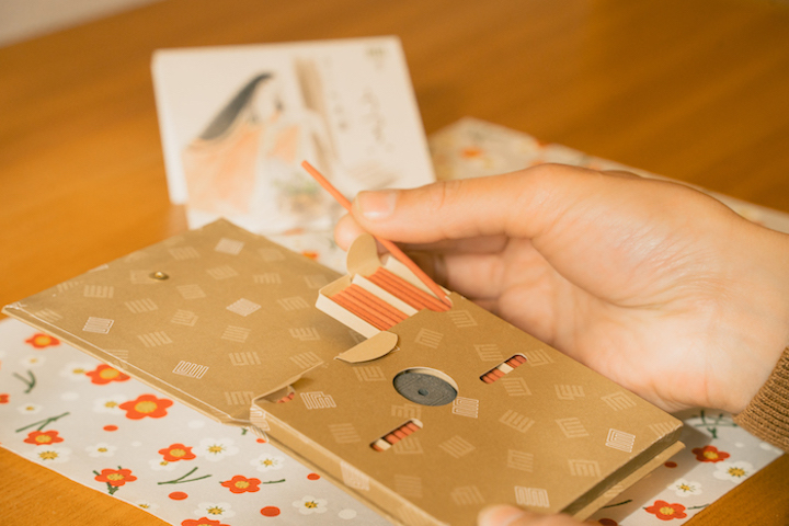文を紐解くように、玉紐で結んだパッケージを開いてください。