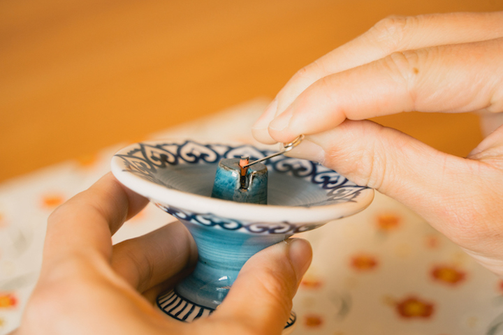 たき残ったお香は、ピックなどを使うと簡単に取り出すことができます。