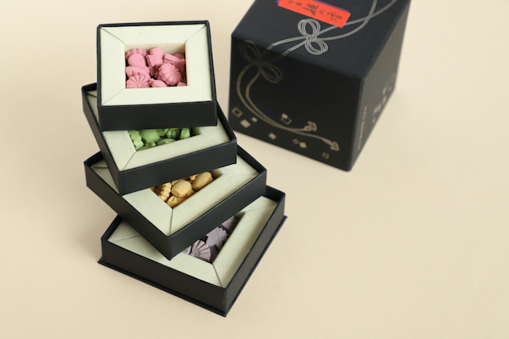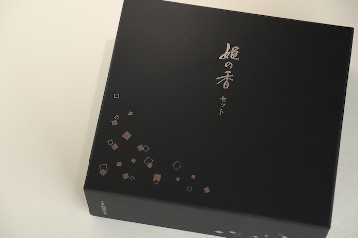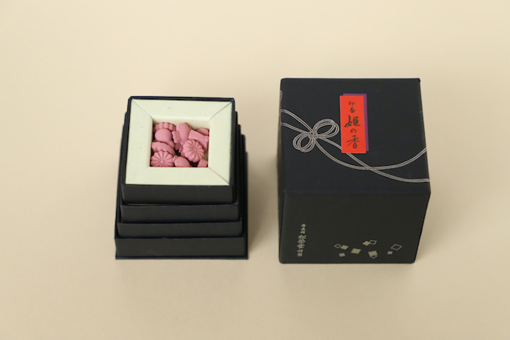 「印香 姫の香」は4種の香りをそれぞれ一段ずつ小箱におさめ、お重のように重ねています。