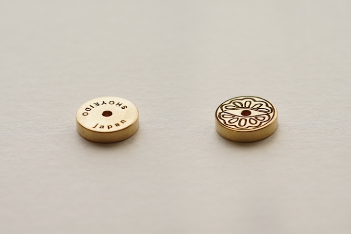 曲線が美しい蛤型の器に、オリジナルの真鍮製香立をセットしました。
