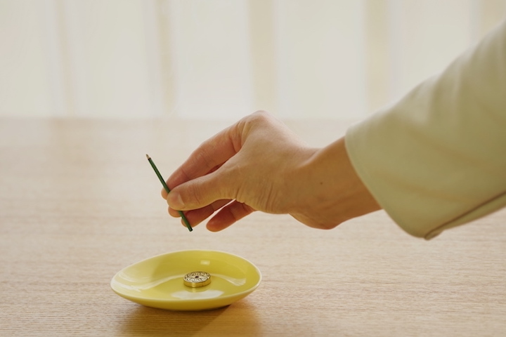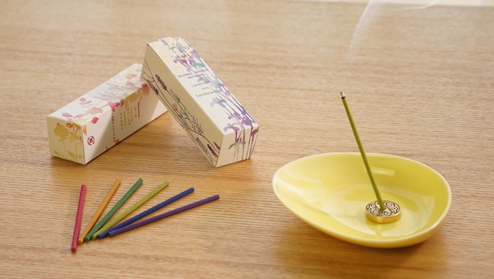シンプルな器にお香を立てれば、カラフルな花束から一輪の花を投げ入れたような、凜とした立ち姿と、すらりと流れる煙が楽しめます。