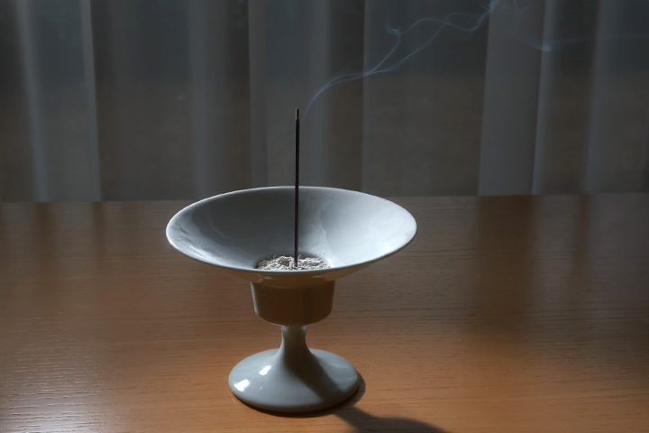 うつわの中でまっすぐ立つ姿はとても美しく、香坏の端正なフォルムがその美しさを際立たせるようです。
