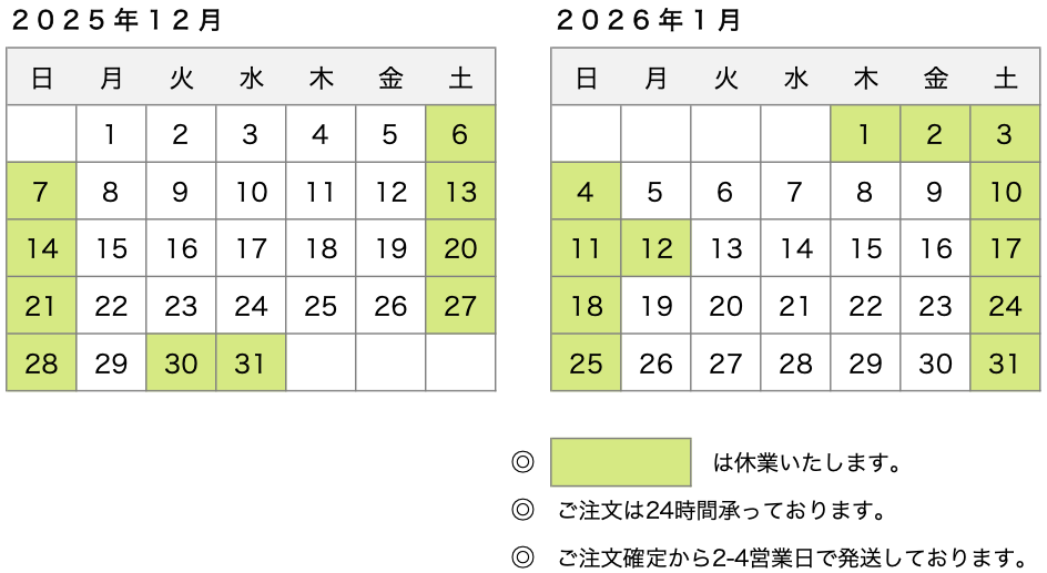 在庫のあるご注文は2025年12月26日(金)に京都本社よりゆうパックで発送いたします。